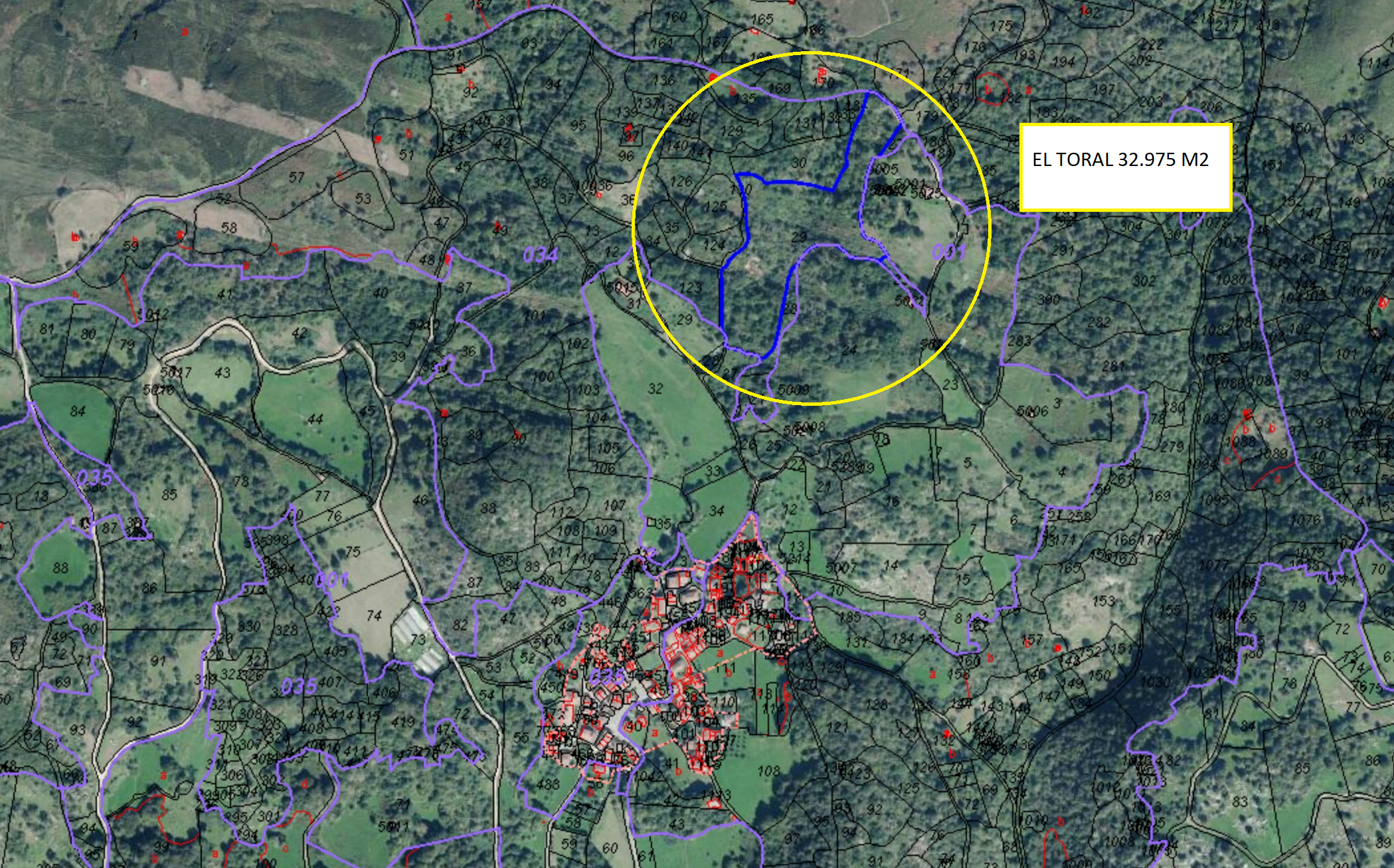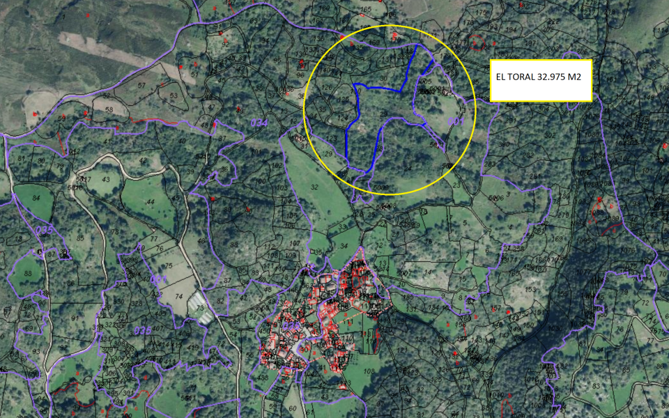 Situada en el lugar de El Toral, esta finca consta de 29.970 metros cuadrados y linda en su límite norte con camino.
